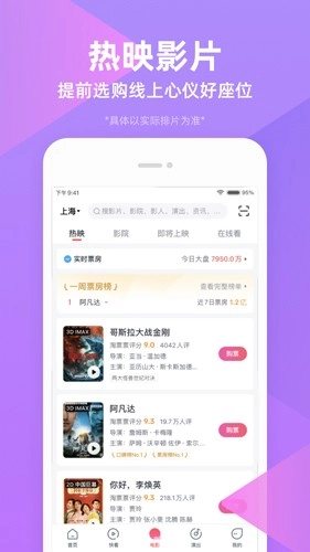 覆盖全国7000+合作影院,提供实时座位图选座服务