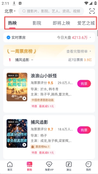 2、浏览当前热映影片列表或按影院筛选