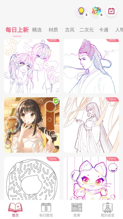 高级配色与自定义颜色,海量梦幻治愈的绘画线稿,你可以随意上色和涂鸦,点燃你的想象力,自由探索彩绘的乐趣!