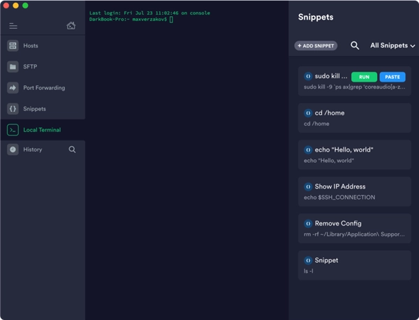 5、支持在不同终端使用Snippets,将常用命令保存,实现长命令一键输入,提高写作效率。