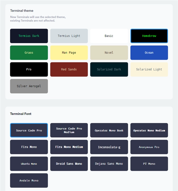 7、为喜欢自定义终端样式的用户提供多种主题选择,字体配色皆可修改。还可跨设备同步主题、常用命令、主机地址、登录信息等数据。