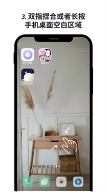 3、双指捏合或者长按手机桌面空白区域。