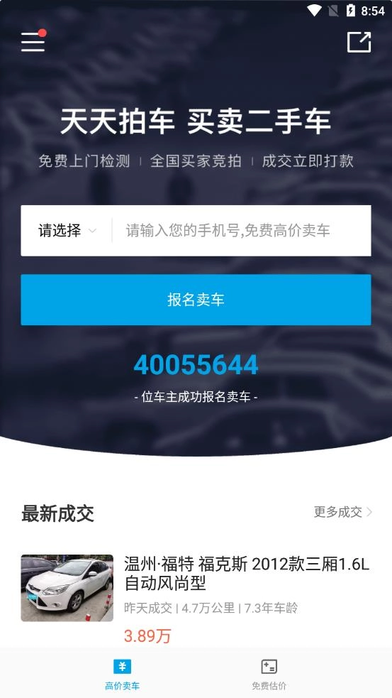 天天拍车二手车是款专业的买车卖车服务平台,专门打造二手车服务,支持线上竞拍,线下叫车,还为大家提供了上门检测、免费估价、包办手续等一站式的二手车交易服务助手,满足所有用户的使用需求,随时在线进行车辆买卖,非常的正规,需要的用户可以使用。