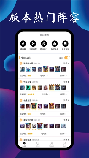 云顶攻略助手,这款实用的游戏辅助工具非常值得推荐,内含海量的云顶之弈相关资讯,助你轻松掌握各类阵容搭配技巧。无论是角色信息查询,还是多种阵容组合尝试,都能在这里实现,功能齐全,操作便捷。
