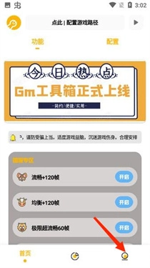 1、打开GM工具箱,接着在首页的国服专区里,点击任意画质右侧的“开启”按钮就行。