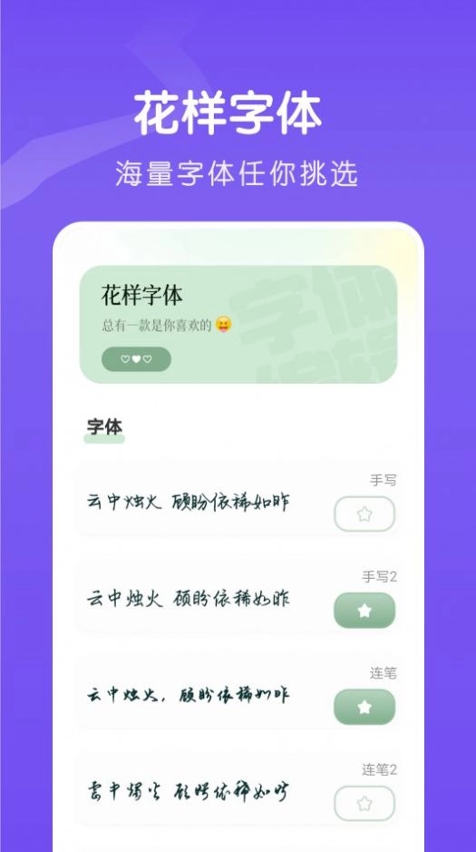 3、喜欢经常更换字体使用的用户提供很多的便利,在线的选择自已心仪的字体。