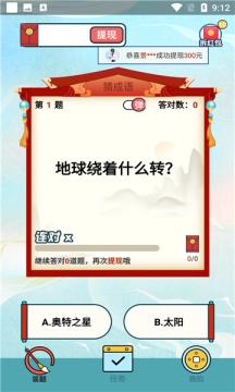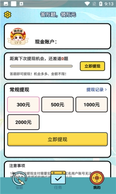 2、用户完成答题就能轻松赚取红包奖励,红包累计即可快速提取。
