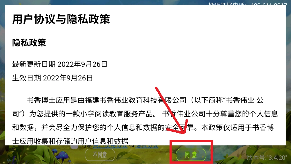 进入软件先阅读完用户协议,没有问题的话候选同意。