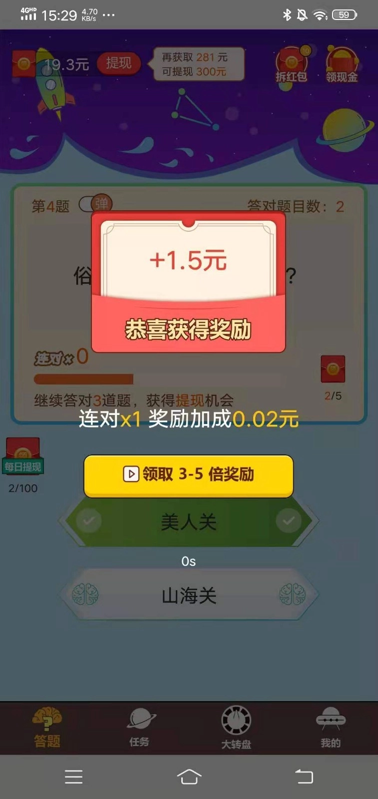 美好的一天从答题开启!参与闯关答题赢取零花钱,1元即可随时提现!