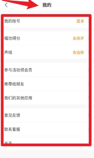 点击左上角的返回按钮,就能切换到我的页面,在这里可以查看账户信息、唱功得分、参与活动记录等个人中心相关内容。