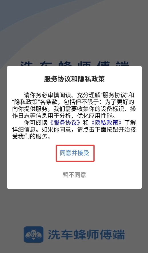 首次打开应用程序时,需点击弹出窗口里的同意按钮,才能进入主界面并开始使用相关功能。