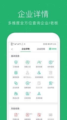企业查询宝是一款专业级的组织机构及企业信用信息查询平台,旨在透明商业环境,连接市场信息,深度整合并降低信息碎片,方便各类用户按各类工商主体信息及机构信息(组织机构代码,(机器)企业名称,法人(代表),经营范围,注册资本,机构(企业)地址,企业类型,注册号(机构登记证号))实时查询组织机构、工商、机构分支等信息。同时用户可以对企业(机构)进行评论(吐槽),和收藏,并提供搜索记录和浏览记录,方便用户随时快速查看。
