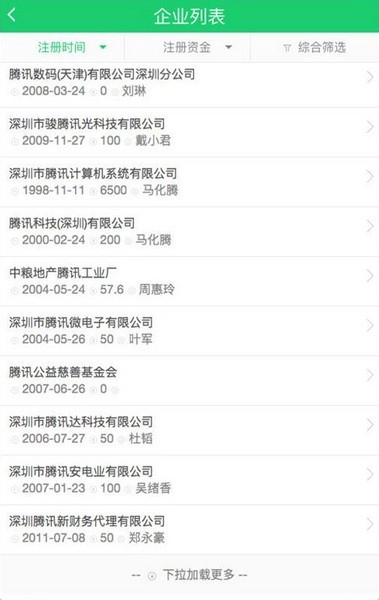 依然是以腾讯为例,在进行模糊搜索之后,你会发现叫腾讯的公司相当多,而真正的腾讯全名是深圳市腾讯计算机系统有限公司,这个相当复古的名称其实与腾讯起源时代的环境息息相关。