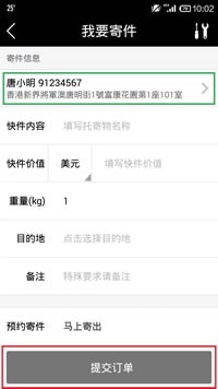 -可按寄件人信息,从手机通讯录或顺丰地址簿中选择寄件人的资料(绿格示)