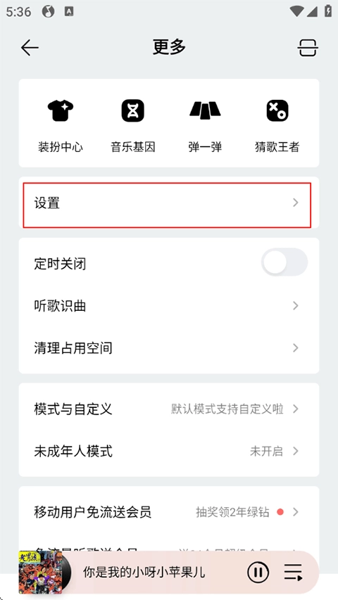 打开QQ音乐,点击我的-右上角设置;