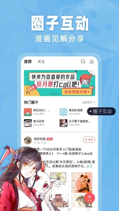 3、活跃互动社区,用户可自由发表评论、点赞收藏、关注同好,分享观感与解读,打造专属漫画社交圈。
