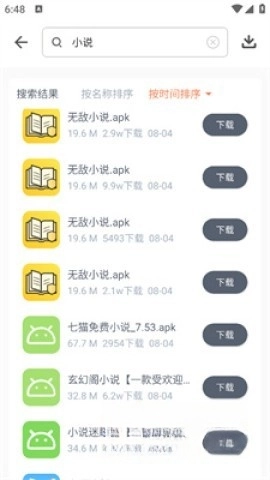 点击热门搜索类别,比如小说这类,就能获取不少相关软件,不用再费神去寻找了。