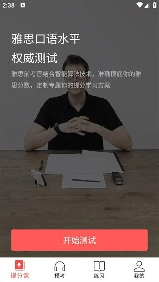 2、选择适合自己的学习模块,可以进行口语水平测试。
