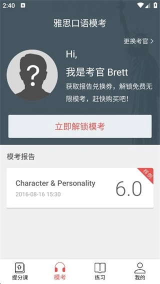1.多国考官进行一对一模拟,以适应不同的口音和语速,还原真实的考试场景,并提供权威报告进行准确的纠错。