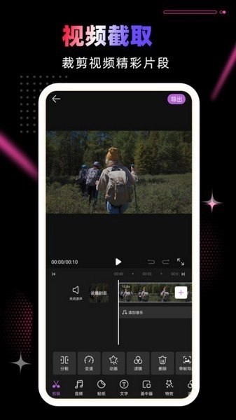 3.让您轻松剪辑各种炫酷唯美的短视频,拥有大量的视频剪辑特效和素材;