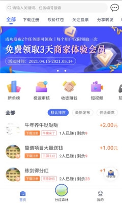 2、在首页就能看到所有任务的详细信息,不同任务的收益各不相同,领取前请仔细阅读相关说明。