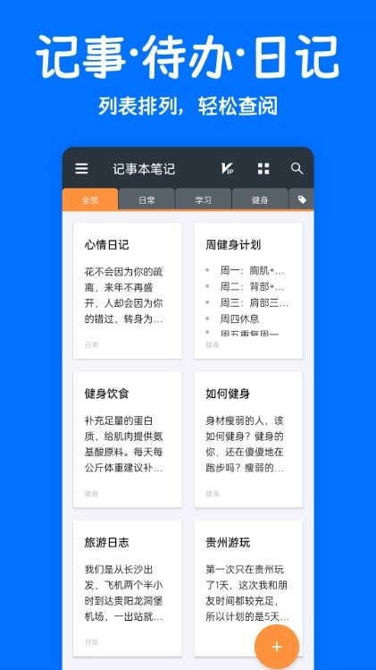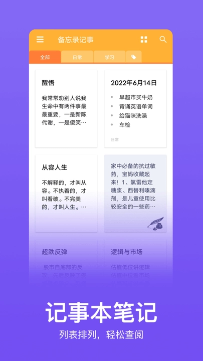 5.高效便捷:支持快速记录内容、对笔记进行分类管理,还能通过全文搜索精准定位所需信息,有效提升笔记管理的整体效率。