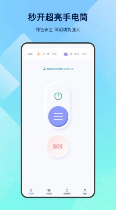 1、超亮手电、手电筒瞬间开启,一键启动手电、手电筒。