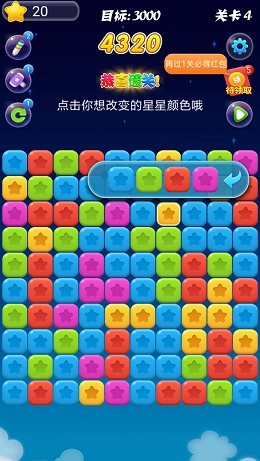 2.能够去灵活的移动自己的星星,这样就可以去积攒很多的星星去进行移除。