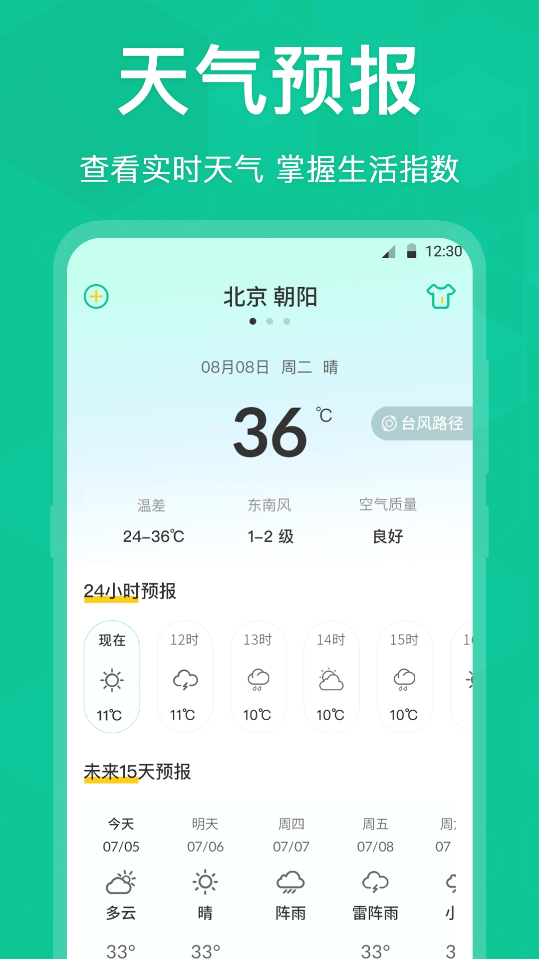 1、天气预报:模块简洁清晰,天气情况的数字放大,看每日天气更易懂更清晰。还支持切换不同城市哦!