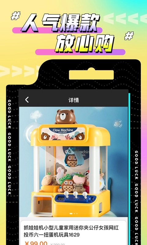 欢聚娃娃城是一款专为当代年轻人设计的线上抓娃娃应用,平台汇聚了拉布布、哆啦A梦、草莓熊等多种热门玩偶,所有商品均为正版授权、品质保障。用户可通过积分兑换或直接购买两种方式获取心仪玩偶,下单后填写地址即可享受包邮到家服务,便捷又高效。