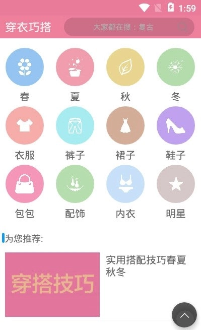 穿衣搭配是一个专注于时尚穿搭服务的软件,让大家随时都可以轻松进行穿搭,这里提供了超多的穿衣搭配技巧,包含不同季节的穿搭指南,让你更好的选择适合的穿搭。提供超详细的分类,让大家随时在这里寻找穿搭灵感,是深受广大女性用户喜欢的穿搭指导。