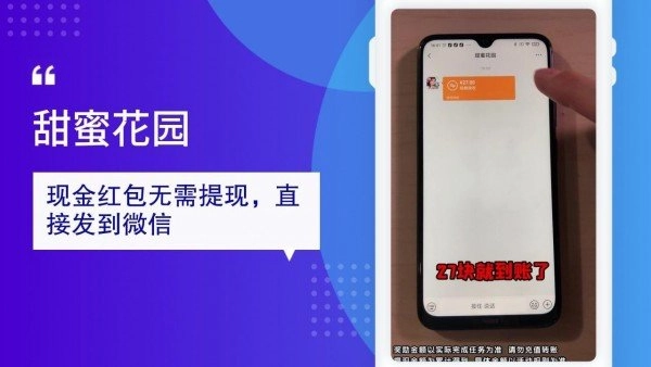 甜蜜花园新人注册就送5元现jin红包,直接发送到微信。