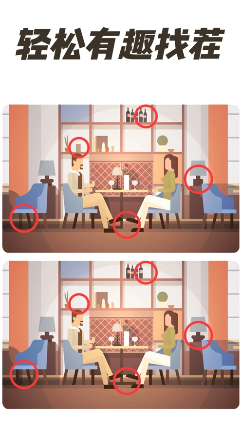 6、发挥你犀利的目光,发现隐藏的不同,逐个击破难题,轻松掌握游戏技巧。
