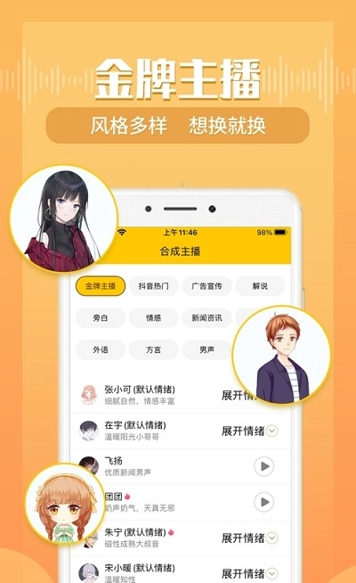 2、包含各种音色,非常适合主播直播、广告宣传、超市促卖、铃声制作等诸多场合使用;