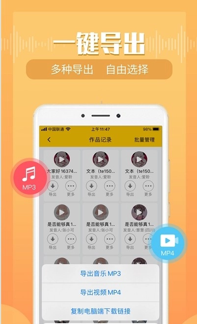 3、便捷制作配音,文字快速转换很方便,一键即可操作,极速导出语音文件。