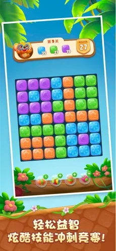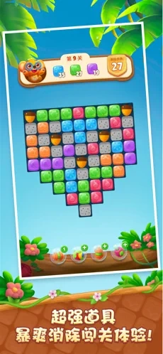 2、经典三消机制与全新创意玩法相融合,在这里你既可以借助各类道具,也能通过手动点击来消除方块;