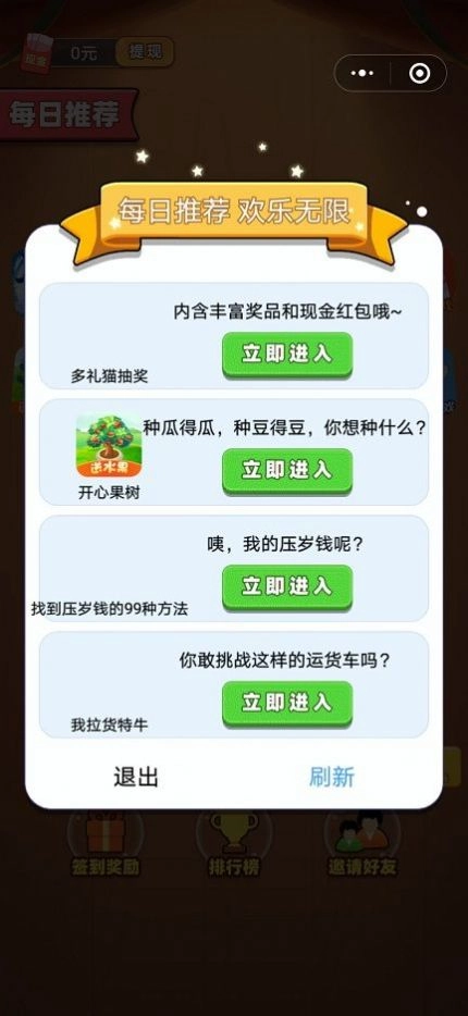 3.每日推荐里,现金红包的赢取途径更丰富了。您可以马上进入,体验全新的水果赚钱游戏。