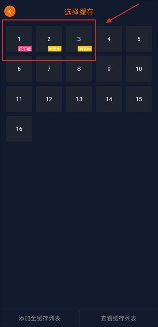选择好想要缓存的集数后,点击左下角的【添加至缓存列表】按钮。