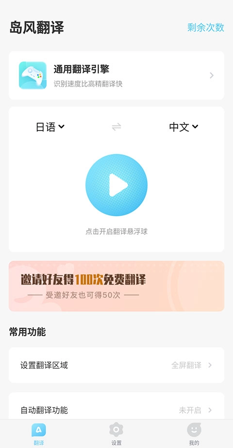 接下来点击界面正中间那个蓝色的【播放按钮】,这样就能开启翻译悬浮球功能了。