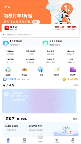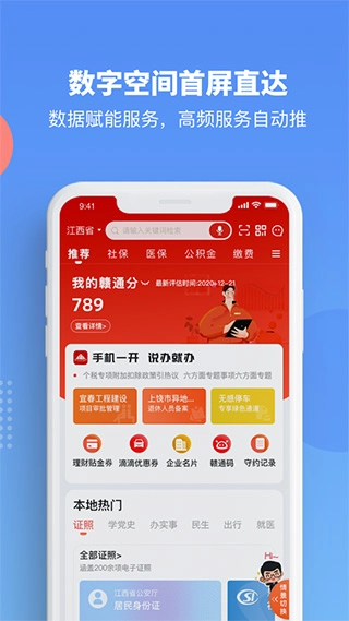 依托电子证照系统,用户可在线申领并查看身份证、驾驶证、社保卡、结婚证、离婚证、律师证等电子证照,且这些证照能在对应办事场景中使用。此外,通过与赣南日报、赣州广播电视台移动端对接,用户还能浏览最新资讯。
