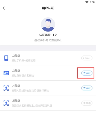 选择通过身份证实名核验,点击“去认证”