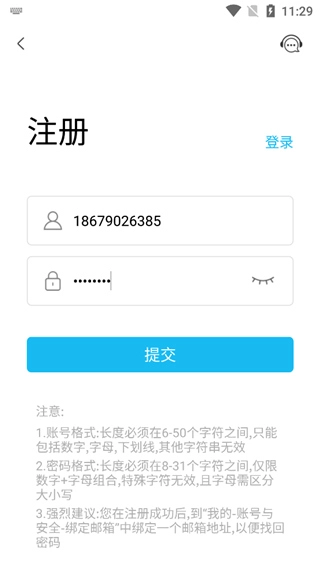 2、任意注册账号和密码点击提交即可;