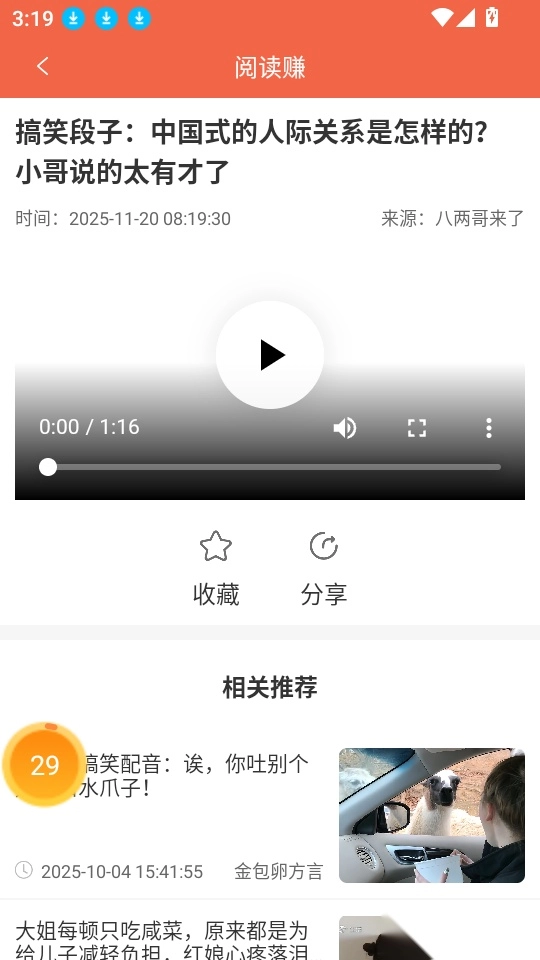 之后就能阅读文章和观看视频,点击“收藏”按钮即可一键收藏。