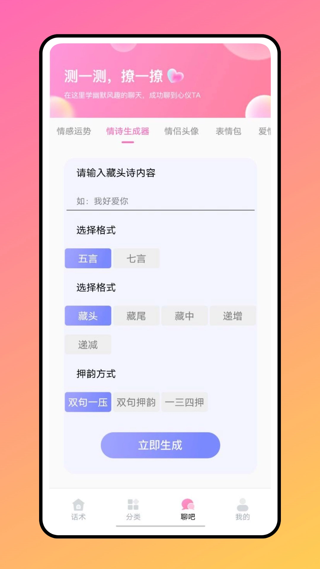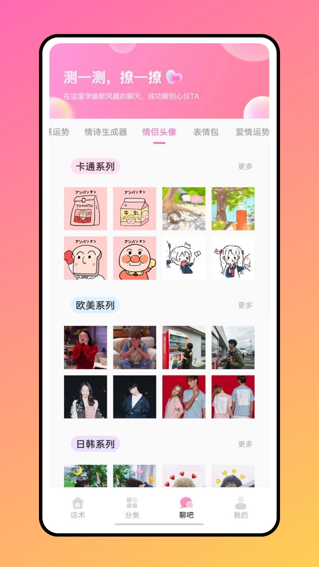 2、还有情诗生成器、情侣头像、表情包、情感分想的等;