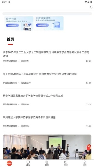 1、进入首页,可以了解考试、学习等动态。