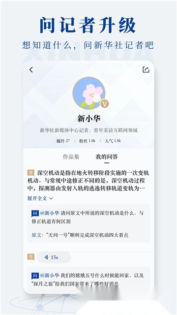 你可以随时使用“问记者”功能,和新华社分布在世界各地的3000多位记者进行实时互动,直接向他们提问,实现即时的沟通交流。记者们始终奔波在路上,新闻的触角也一直在不断延伸。