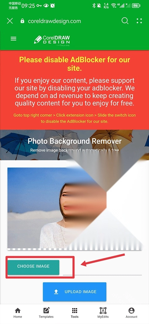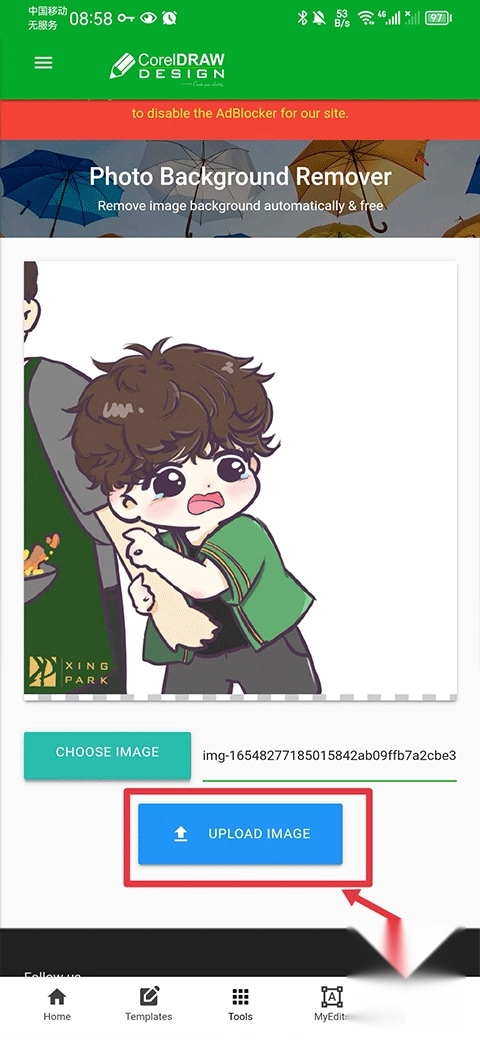 进入功能页面后,点击“Choose Image”按钮上传图片。