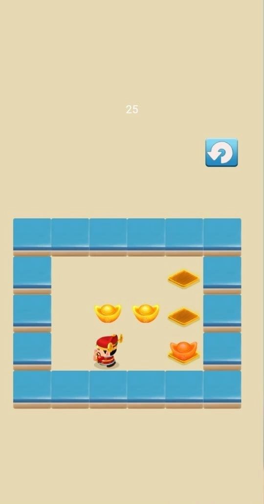 游戏的场景设定在一座小型仓库里,玩家将化身为小财神,任务是把元宝推到指定的目标位置。