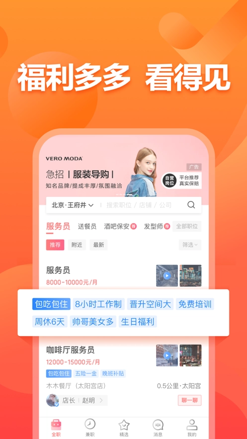 店长直聘最新版是一款掌上求职招聘的服务平台,可以帮助用户快速的找到适合自己的工作,还有超多的兼职工作,大家可以每人在平台上来进行查找,操作方便又简单,从根本上解决招聘求职的烦恼,赶紧来试试吧!
