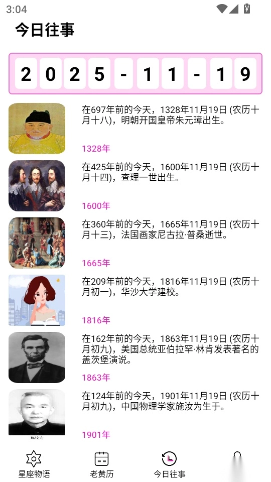 软件支持看看历史上的今天发生的事件。